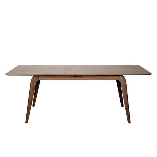 The Alyssa Extending Dining Table blends classic style with contemporary design. This table, which extends from 63 inches to 83 inches with one middle extension leaf, has walnut veneered top, solid wood frame and legs. The walnut stained ash veneer finish compliments a multitude of design styles, from traditional to modern.