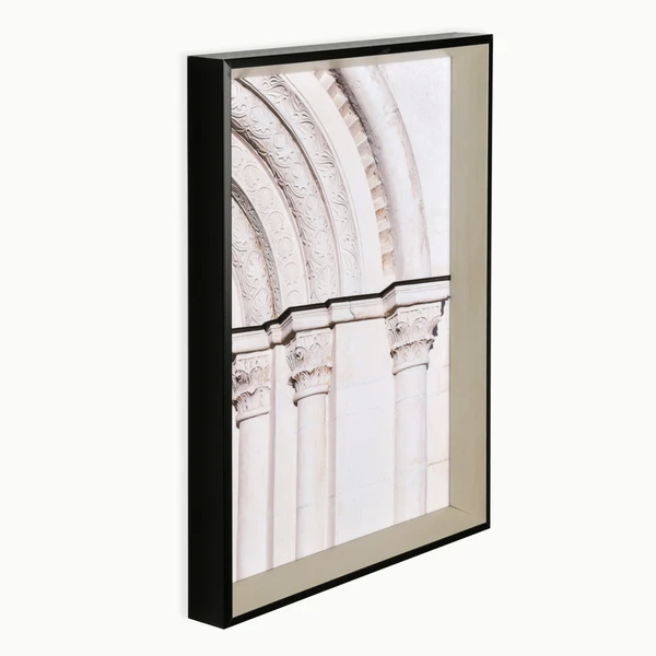 Arc is a framed graphic under glass with a 2-tone black with cream angled profile frame.
