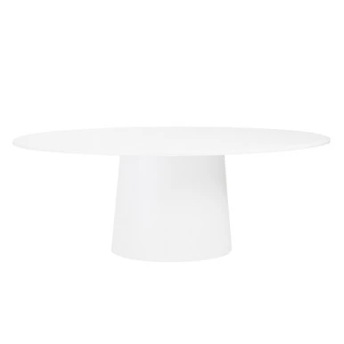 Perfect for formal gatherings and casual get-togethers alike, this dining table flaunts a versatile oval silhouette and matte white finish. Seats up to eight guests.