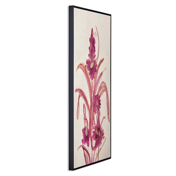Printed on canvas and set off with a black floater frame, this floral abstraction from artist Danielle Davis enlivens any wall with its bold, vibrant brushstrokes and hand-applied gold embellishments.