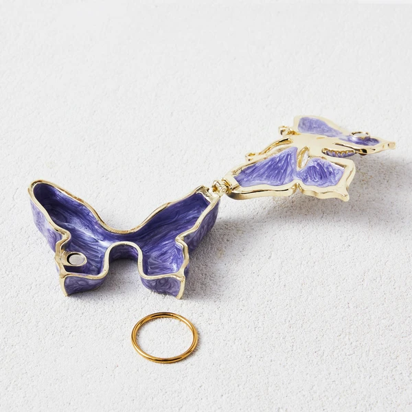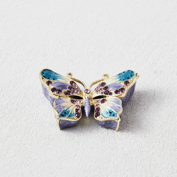 Our enchanting Butterfly Jewelry Boxes provide extra special storage for your small treasures. The metal box is topped with crystals for extra sparkle. The hinged lid opens to reveal whatever you wish to tuck inside.