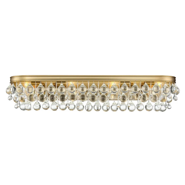 Dripping in modern elegance, our Calia Lighting Collection puts a playful twist on your lighting design. An opulent cascade of clear glass spheres create a sparkling display that dances in the light. Set against a vibrant gold frame, our eye-catching collection is the perfect expression of your glamorous style.