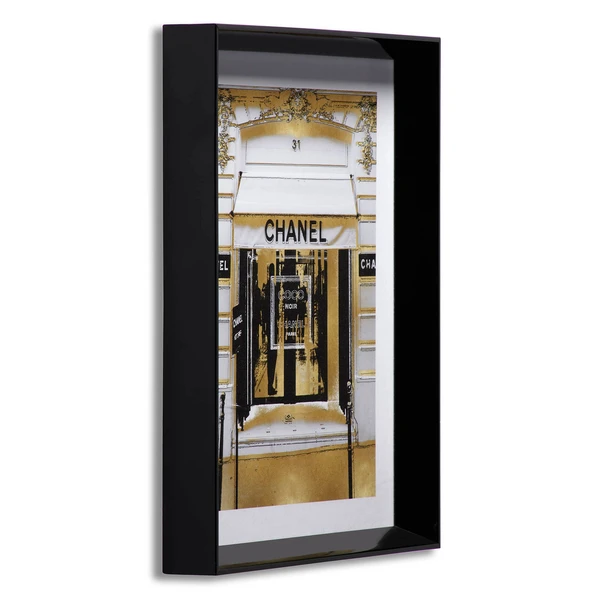 Ideal for adding a luxe note to your space, the glam storefront prints in this series are rendered in black, white, and gold and come beautifully framed.