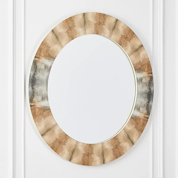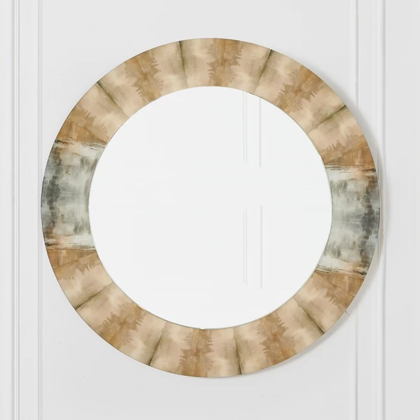 Inspired by cloudscape paintings, this mirrorâs round frame is finished with a soft wash of color in gradients of taupe and blue, making it a brilliant, neutral accent for any wall.