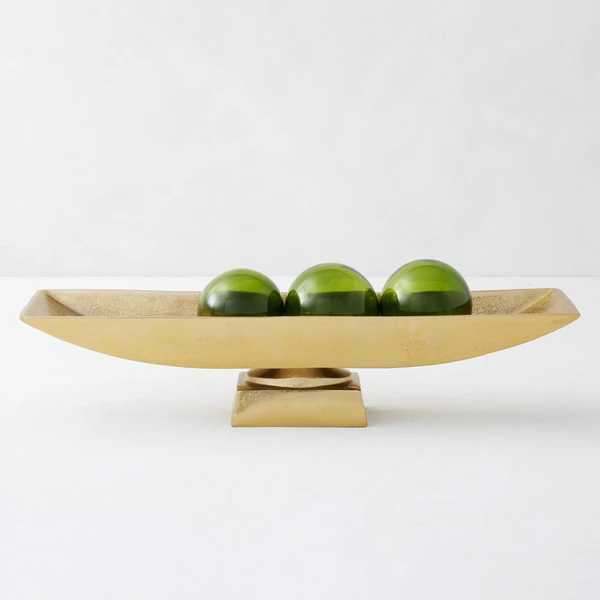 Handsomely hand-cast from aluminum and finished with gold nickel plating, our Collins Bowl stands out as an exceptional decorative piece. For added dimension and visually interest, our Collins Bowl sits atop a rectangular pedestal base. Designed to celebrate refinement and simplicity, fill the bowl with ornamental objects or simply enjoy it for its luminous beauty.