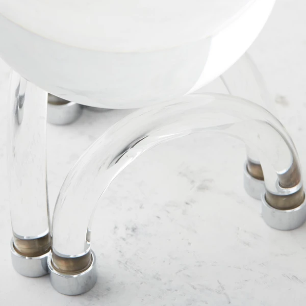 Set of an ultramodern arched base, this crystal orb adds a sleek, sculptural element to any shelf or mantel.