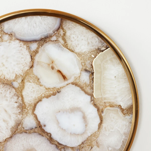 Crafted of agate in neutral tones and framed in gold, this sconce is the perfect mix of art of function.