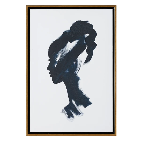 This enchanting portrait from artist Ryan Brown showcases bold, expressive brushstrokes in deep blue. Printed on canvas with a hand-applied image brush gel finish for added texture, this piece is displayed in a gold floater frame.