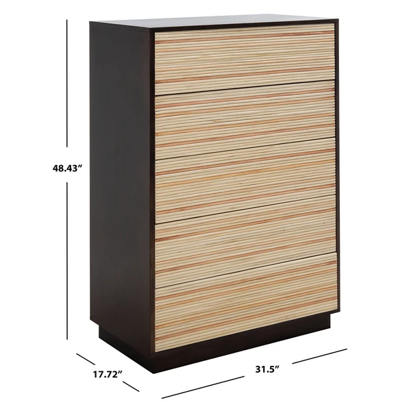 Tantalizing tropical flair breezes into your décor with this coastal-chic Emani Chest. The black wood frame is a perfect juxtaposition to its five geometric, natural-finished cane drawers, providing striking textural depth and lasting style in any interior.