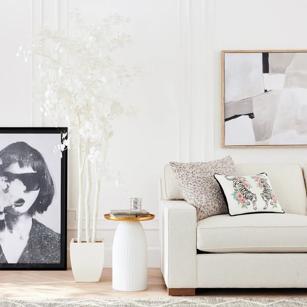 Z Gallerie’s lush ivory Faux Aspen Tree adds low-key and unobtrusive color and texture to open spaces in your decor. The entire arrangement is designed in easy-to-place pristine ivory, from the tree with its multiple trunks and fabric leaves to the square pot and the small pebbles within. Amply fills a corner or wide space with its 6 foot 2 inch height.