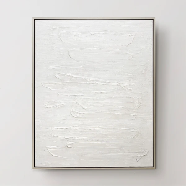 This hand-painted piece is something special! Bold brushstrokes in bright white add an incredible element of texture to this original painting. Rendered on canvas, this museum-quality piece is displayed in a champagne-silver floater frame.