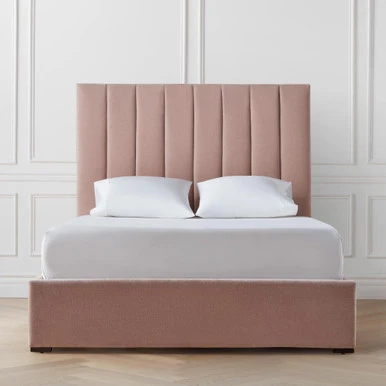 The vertical lines of our channel tufted Hadley Bed convey a dignified feeling of height, while offering a glamorous dimension of plush padding. Hadley is proudly bench-made, ensuring high-quality carpentry and upholstery work. Create your own distinct décor with our plethora of custom fabrics and nail head finishes. Shown in Kenley Chenille Quartz.