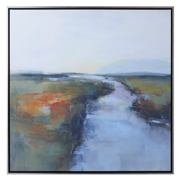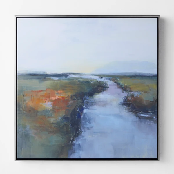 Hit Different IV is what we’d call an abstract landscape, and it will invoke a serene mood in your space. Created in giclee on canvas, this piece has a hand-applied brush gel finish and is set in a silver floater frame.