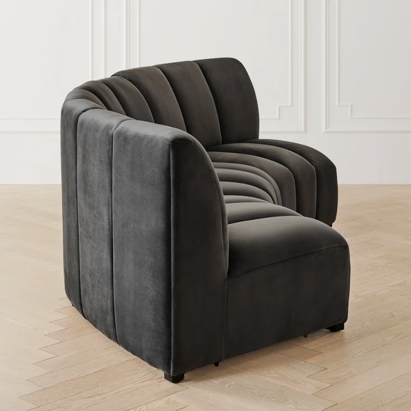 Comfort can be classy and stylish, and Jayce is proof. With its curved, armless silhouette and deep channel-tufted upholstery filled with plush padding, this sectional brings modern style and luxurious comfort to the living room. Shown in Velvet Charcoal.