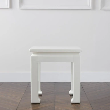 Offering a modern spin on the traditional Ming-style silhouette, this end table exudes simple elegance in acacia wood with a glossy white finish.