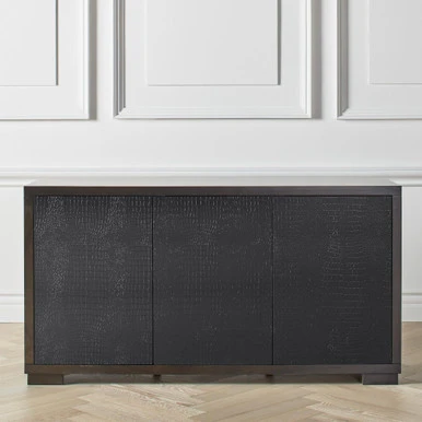 A crocodile pattern on this cabinet’s three doors gives this otherwise clean-lined design dimension and texture. Inside, three drawers and three adjustable shelves offer a wealth of storage space.