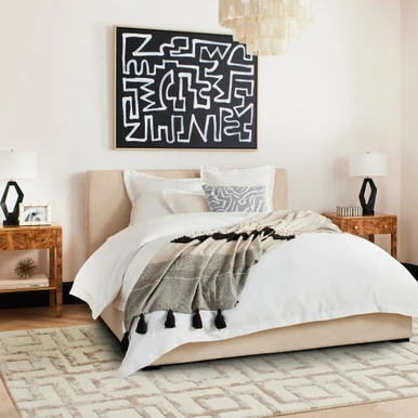Simple and elegant, this platform bed works well in a variety of decors with its neatly tailored upholstery and clean-lined silhouette. Shown in Maxwell Linen Alpaca.