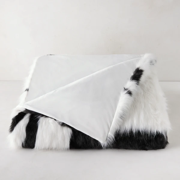 Lounge in luxury with our oversized faux-fur Marble throw, featuring a free-flowing black-and-white print inspired by natural stone and equally luxe velvet on the reverse. Perfect for gifting or adding to your own collection.