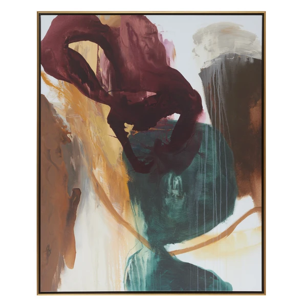 This beautifully layered abstraction from artist Jean Kenna showcases versatile neutral tones with pops of plum and teal. Printed on canvas with a hand-applied image brush gel finish for added texture, this piece is displayed in a gold floater frame.