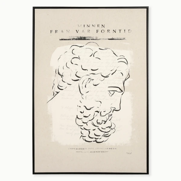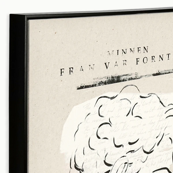 Minnen Beard is a gallery-wrapped natural linen canvas set in an espresso wood tone floater frame.