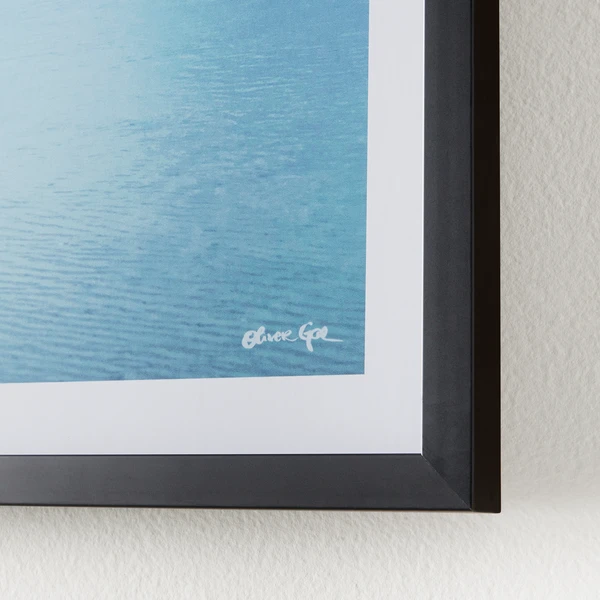- Glossy art print mounted within a high gloss black wood shadowbox frame and set under plexiglass.