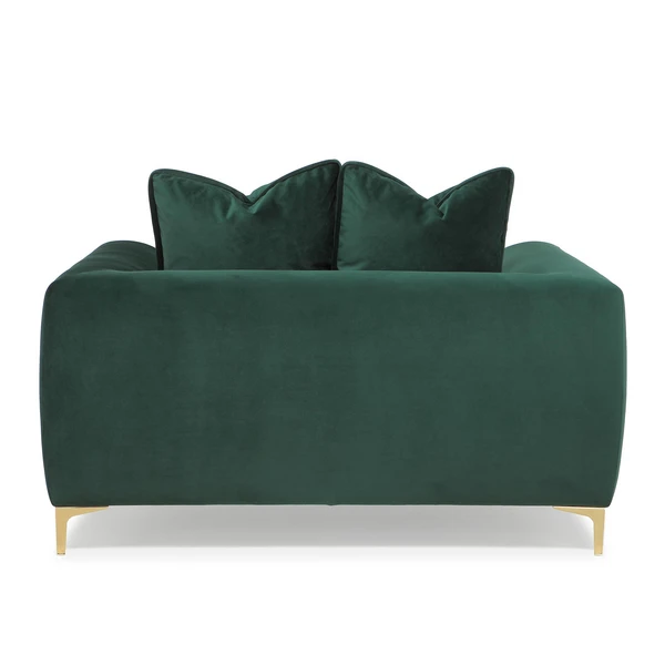 Boasting modern silhouettes, plush foam-and-fiber-filled cushions, and oversize arms, the pieces in our Nia Collection add instant comfort and style to any interior. Shown in Royale Plush Velvet Evergreen.