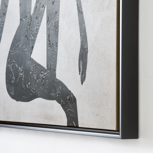 Printed on gallery-wrapped canvas with a hand-embellished texture and set in a black frame, this striking figure study from Nikki Chu lends a modern mood to the wall.