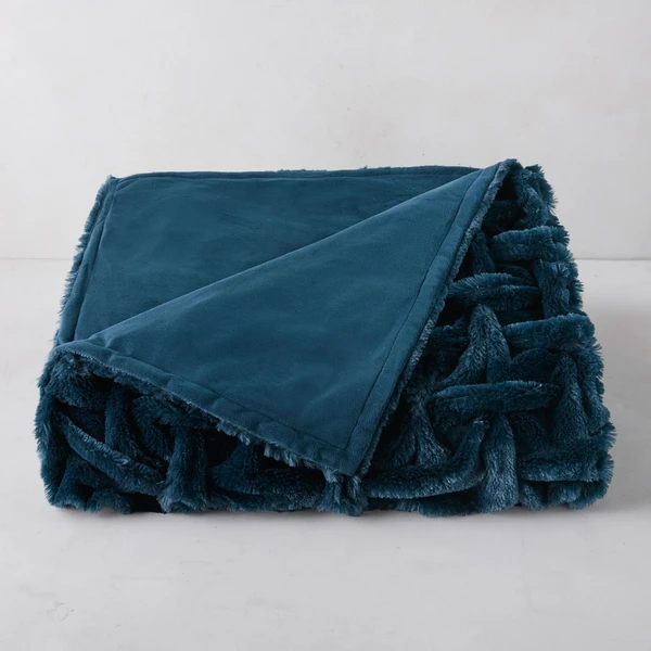 Bask in the luxury of our sumptuous Oslo throw for the utmost in softness and warmth. Large enough to envelop you, it’s made of super-soft polyester with a delicate basket-weave pattern and equally luxe velvet on the reverse. Available in Blush, White, Black, Amethyst, and Cerulean.