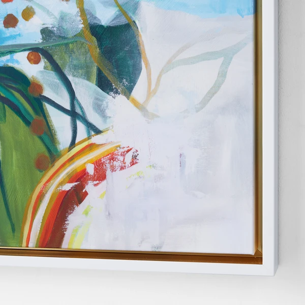Does your home need a pick-me-up? Brighten any room with this piece entitled Plant Cheer. Created using giclee on canvas, it features a hand-applied image brush gel finish and is set in a white floater frame.