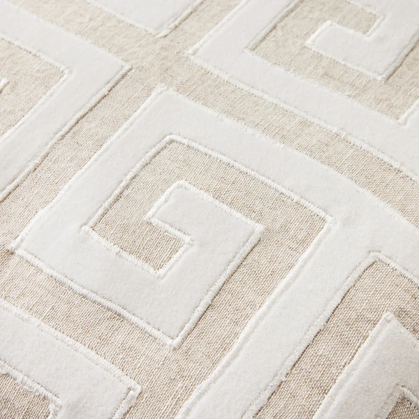 Inspired by traditional Greek patterns, our Rowen pillow features embroidery and cotton velvet appliques to create a glam look. Contrasting textures and colors accent the sophisticated design and make this pillow a bold yet timeless addition to any decor.