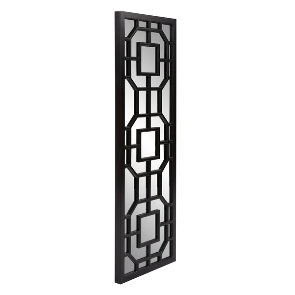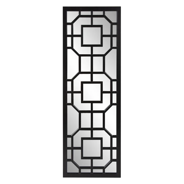 Featuring an intricately detailed lattice overlay design, this wall mirror exudes classic English style. A matte black finish tops off the look.