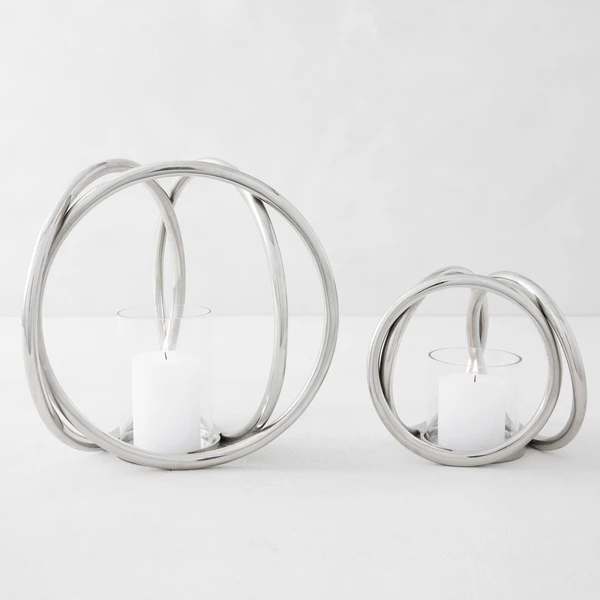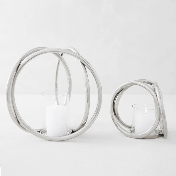 Clear glass and polished aluminum rings create eye-catching dimension for your holiday arrangements.