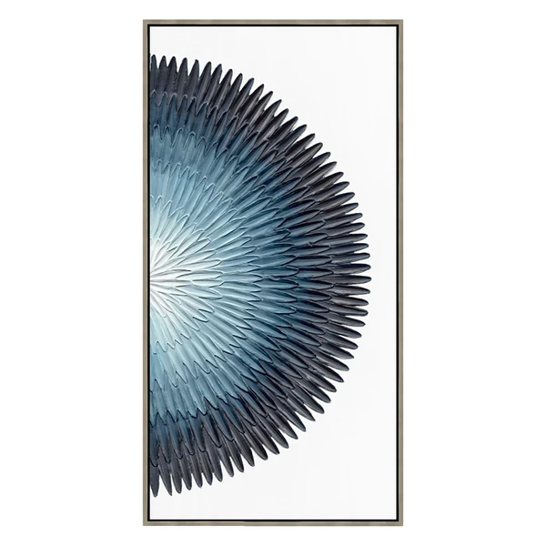 Forget your troubles, come on get happy. This hand-painted canvas makes the blues beautiful. Set in a silver floater frame, it can be hung vertically or horizontally. Complete the look with Troubles I.