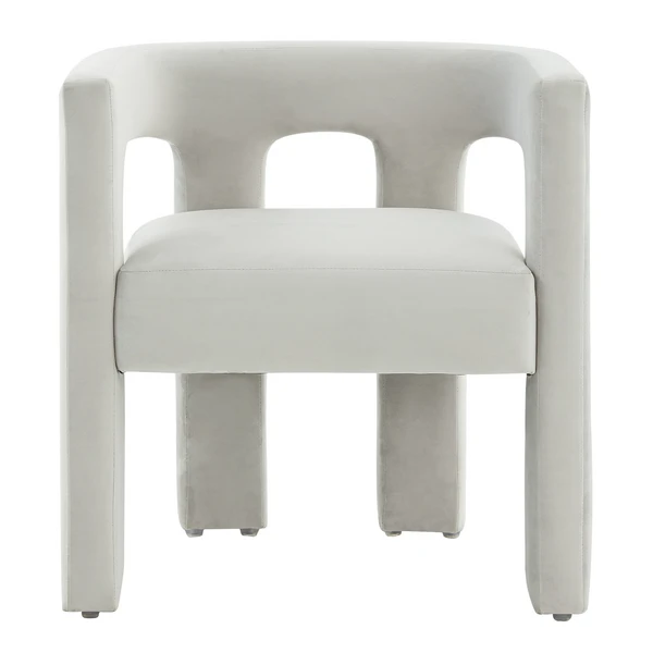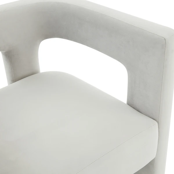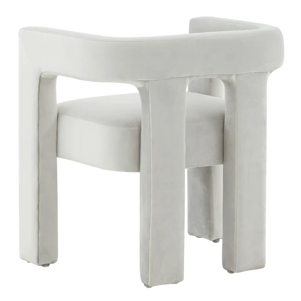 Give your décor a thrilling update with the Turrin Dining Chair. Overflowing with visual depth and modern artistic intrigue, Turrin’s plush light grey velvet spotlights its eye-catching silhouette, making it a bold designer favorite.