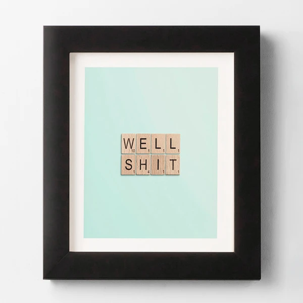 Well Shit is printed on a satin wood finish and comes exposed for a more artistic look.