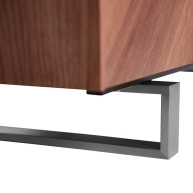 Richly grained walnut veneers set in a chevron pattern adorn the four door fronts of this impressive media cabinet. Brushed stainless-steel legs and hardware complete the clean-lined design.