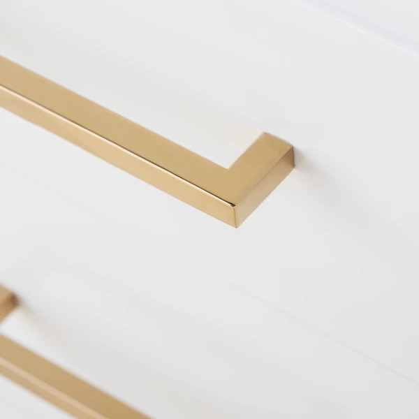 The design of our York Collection harmonizes a distinctive mix of materials, creating a highly stylized design influenced by Greek Key fretwork. Each piece comes with a complete set of both gold and silver finished drawer pulls to suit a variety of décor settings.